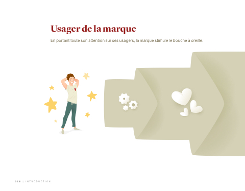 Usager de la marque En portant toute son a ention sur ses usagers, la marque stimule le bouche à oreille. 026 | INTRODUCTION